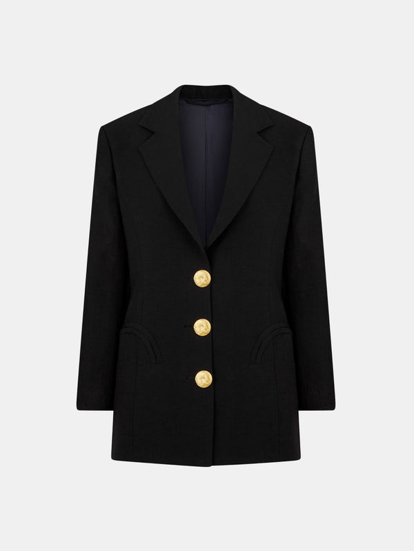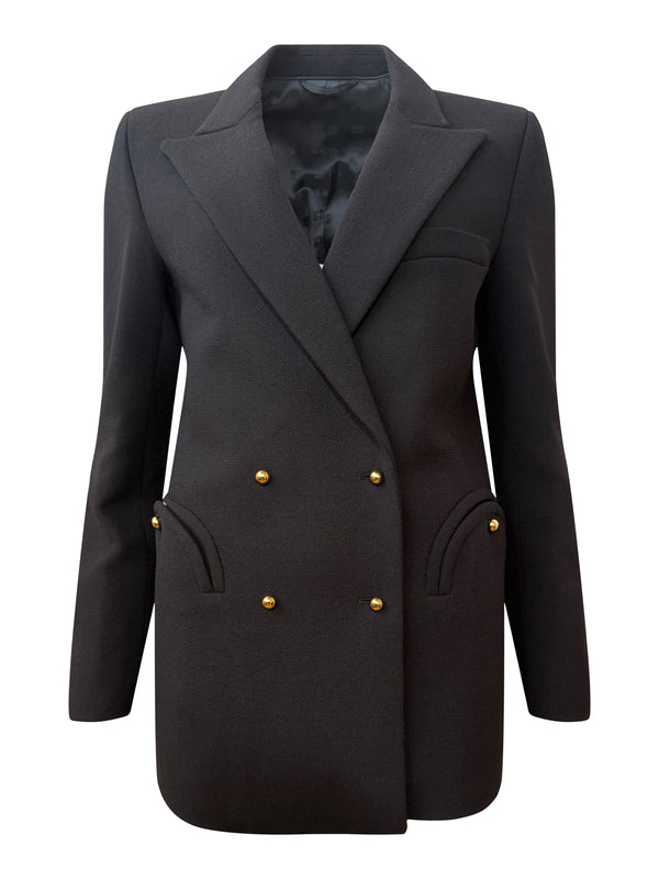 Founded by three Italian fashion editors, Blazé Milano pays homage to the history of the blazer as a universal symbol of power and elegance. The brand goes beyond jackets, reimagining the classic silhouette in fresh ways, including mini dresses and long coats. Perfect for day or evening, the pieces are all designed with interior pockets to store your night-out essentials and eliminate the need for a clutch.