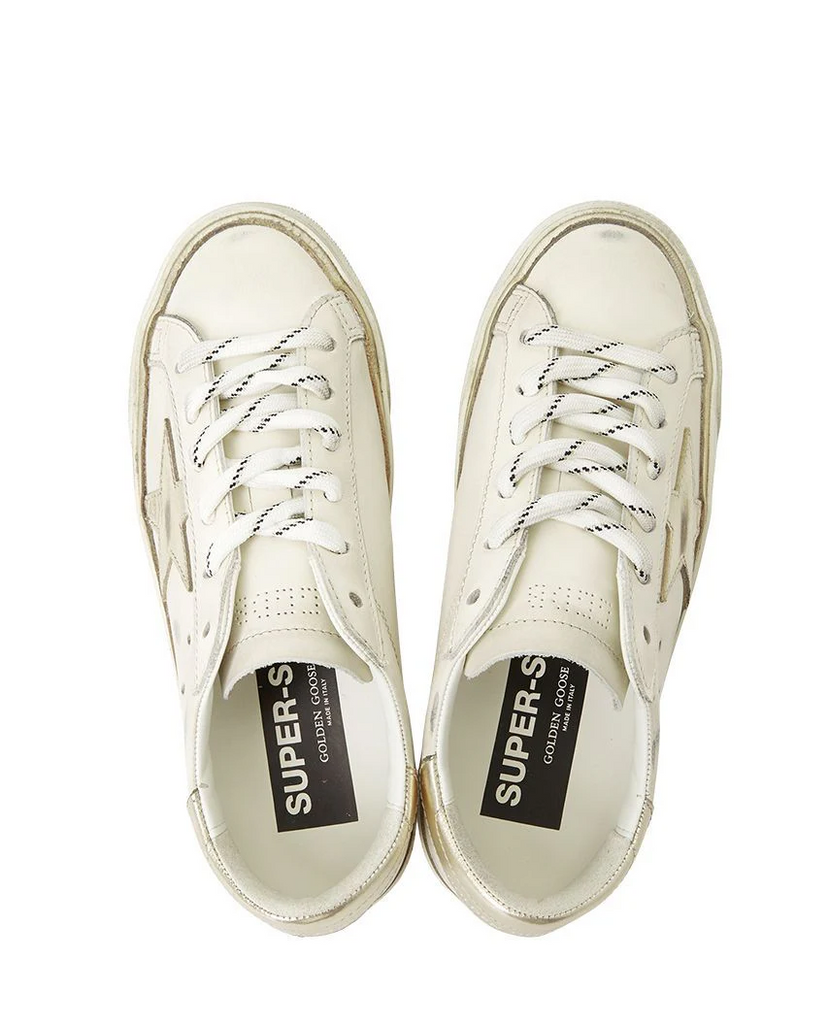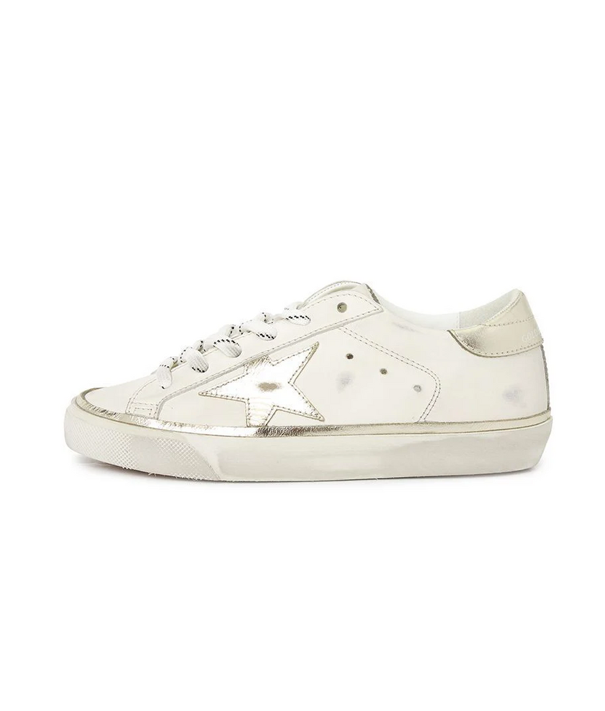 A cult favourite from Golden Goose, the Super Star is a must-have in your wardrobe. Crafted in an a white leather, this sneaker features a gold star heel and gold accent above soul line.