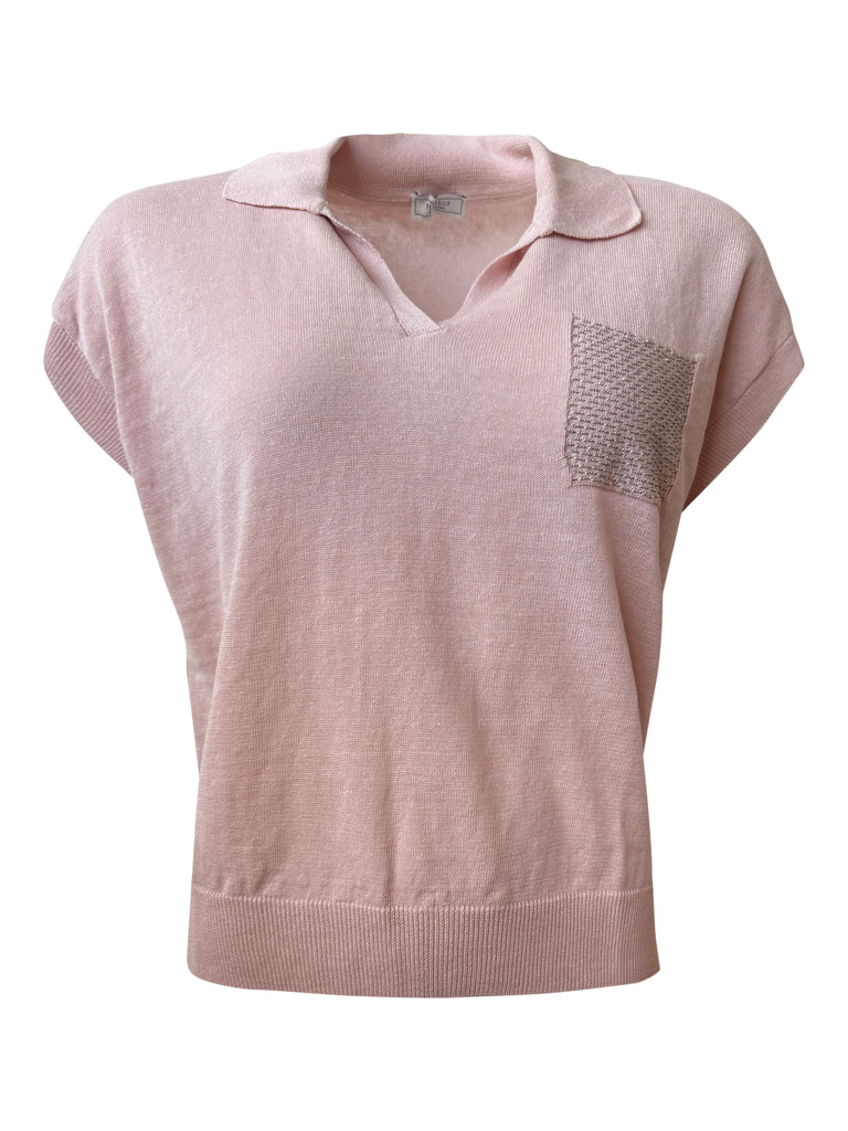 Aurora Pink Cotton Crepe Polo Knit
