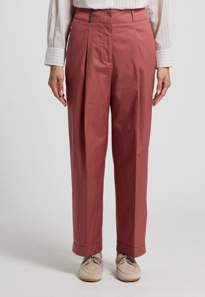 Cotton Sateen Trousers in Photinia Red