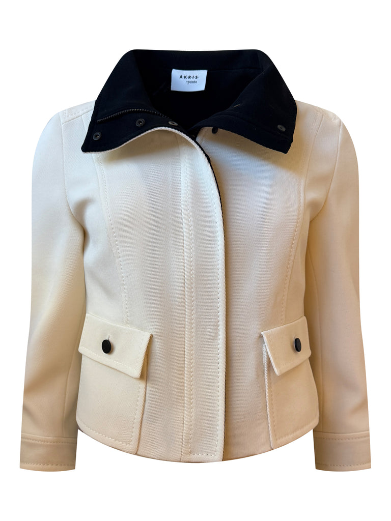 Crafted of tricotrine wool, Akris punto's fitted jacket features a stand collar, concealed zip closure, and flap pockets.