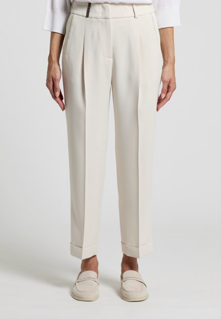 Crepe Cady Pleat Front Trousers in Beige Birch