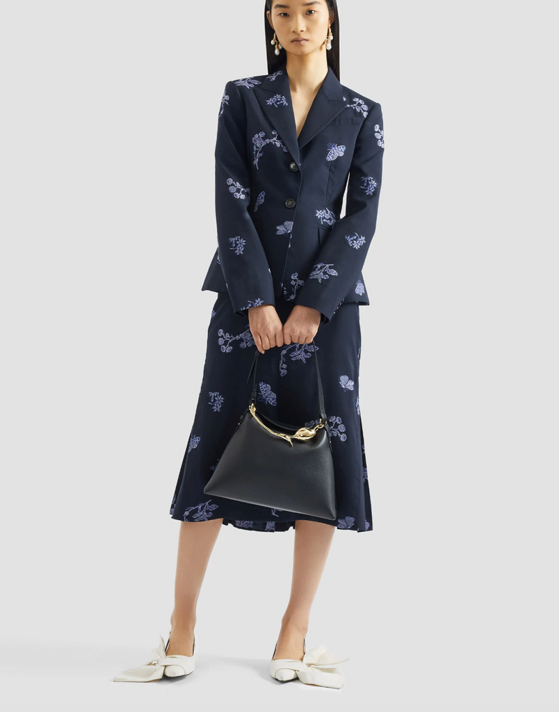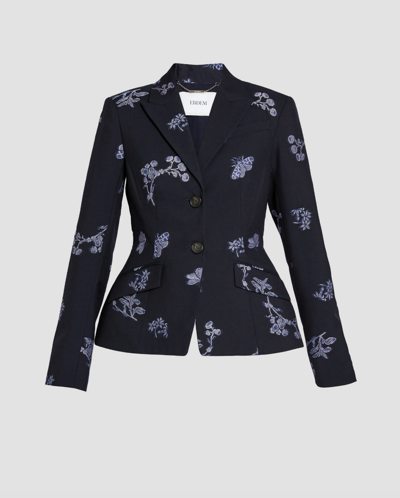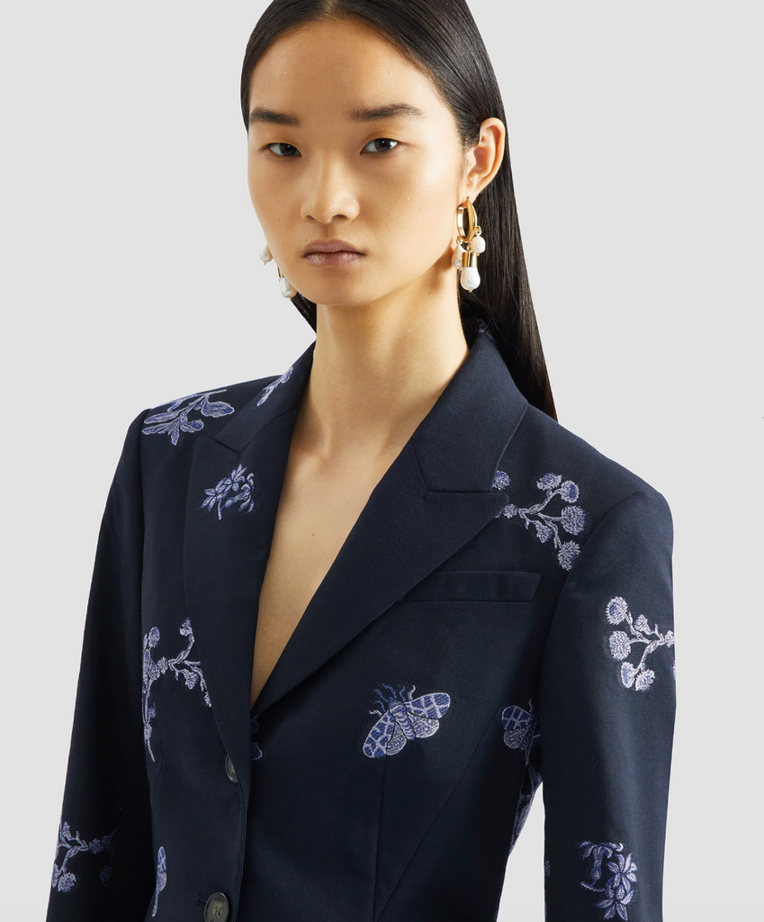 This fit-and-flare blazer is made from jacquard tailoring featuring trailing floral and woven motifs inspired by the season’s muse, Maria Sibylla Merian.