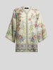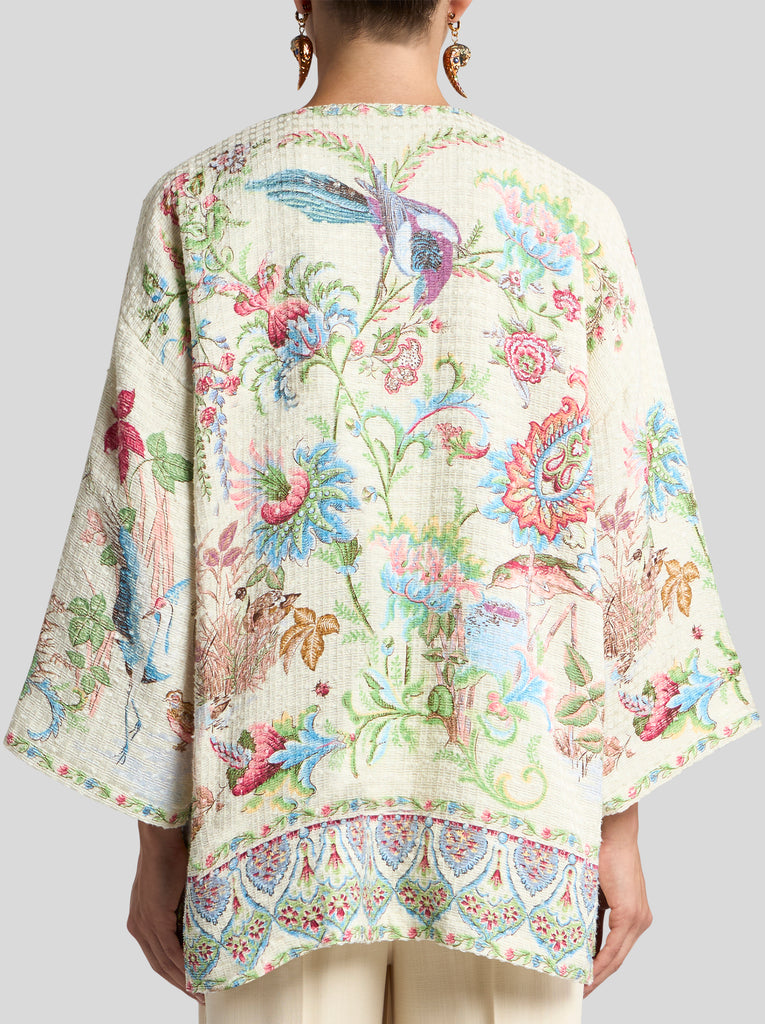 Kesa robe in cotton-blend basketweave fabric. This item features a decorative motif inspired by natural flora and fauna and a pattern with floral medallions on the hem.