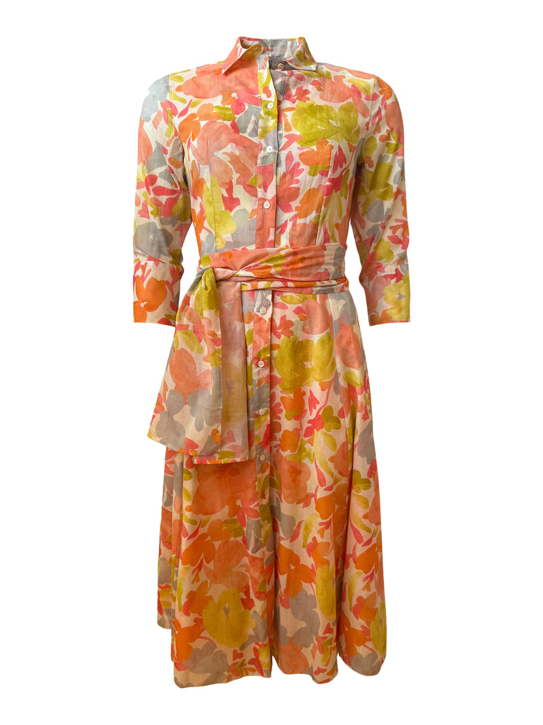 Classic shirt dress style with sash belt, 3/4 sleeve and collar in a beautiful light weight cotton voile.