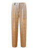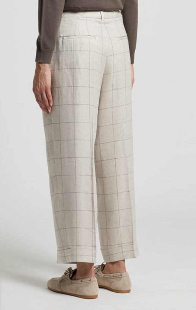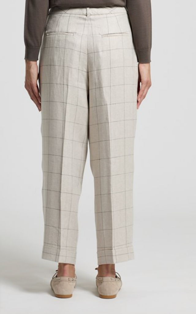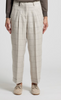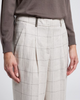 Linen Herringbone Check Pleat Front Trousers in Beige Birch