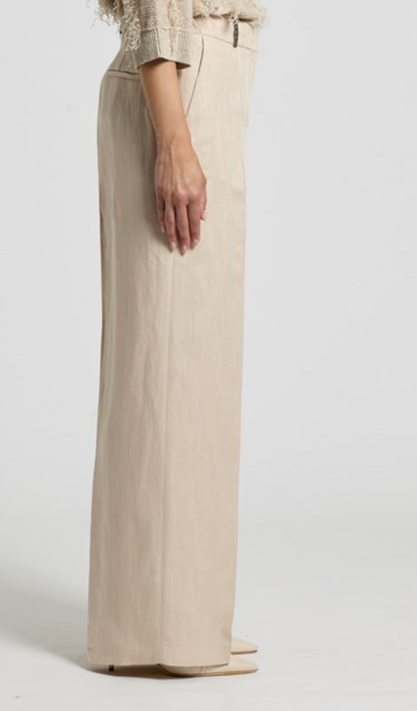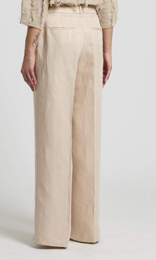 Linen viscose herringbone full length trousers in Beige birch