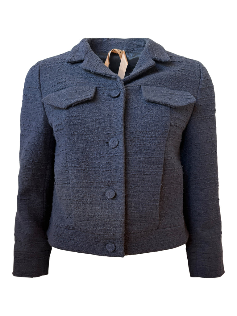 Summer cotton tweed jacket with flap breast pockets. Lined. Wear with the matching skirt or as a cute jacket with trousers.
