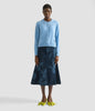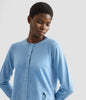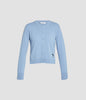 Knitted from pure cashmere, this powder blue cardigan is embroidered with a single navy tulip at the hem – a recurring ERDEM motif. It is finished with covered buttons.