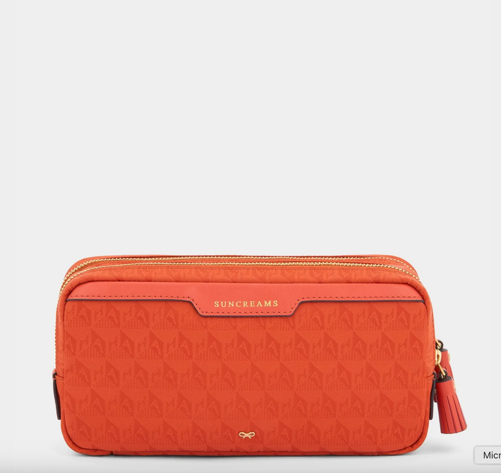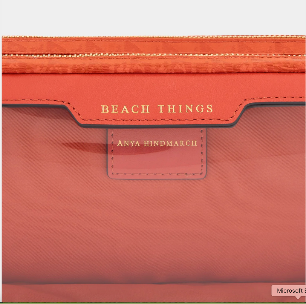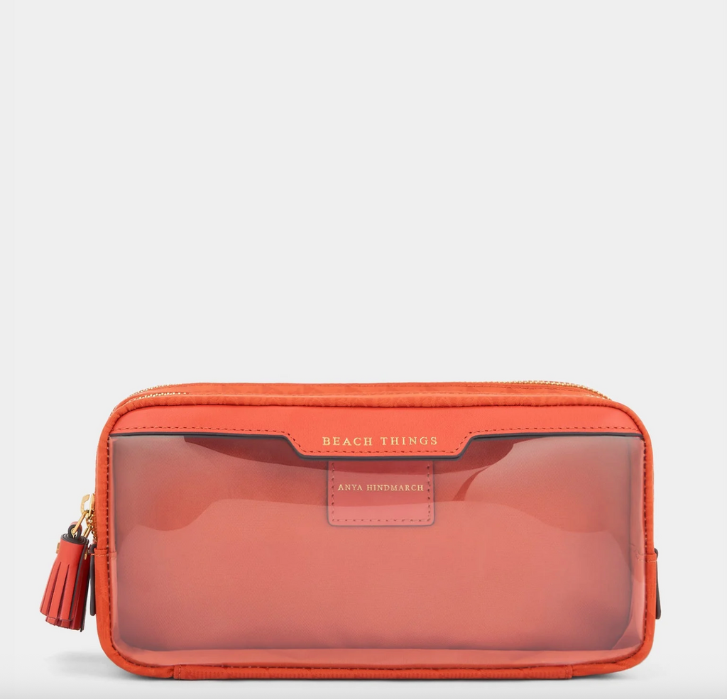 Our Beach Things Pouch is designed to keep you organised at the seaside. Made from AH-logo nylon in a vibrant, burnt-sienna shade, it has two label-embossed sections, each with a tasselled zipper. Keep earphones, keys and lip balm in the clear-pane compartment, and your suncream in the other.