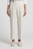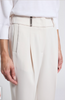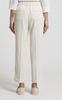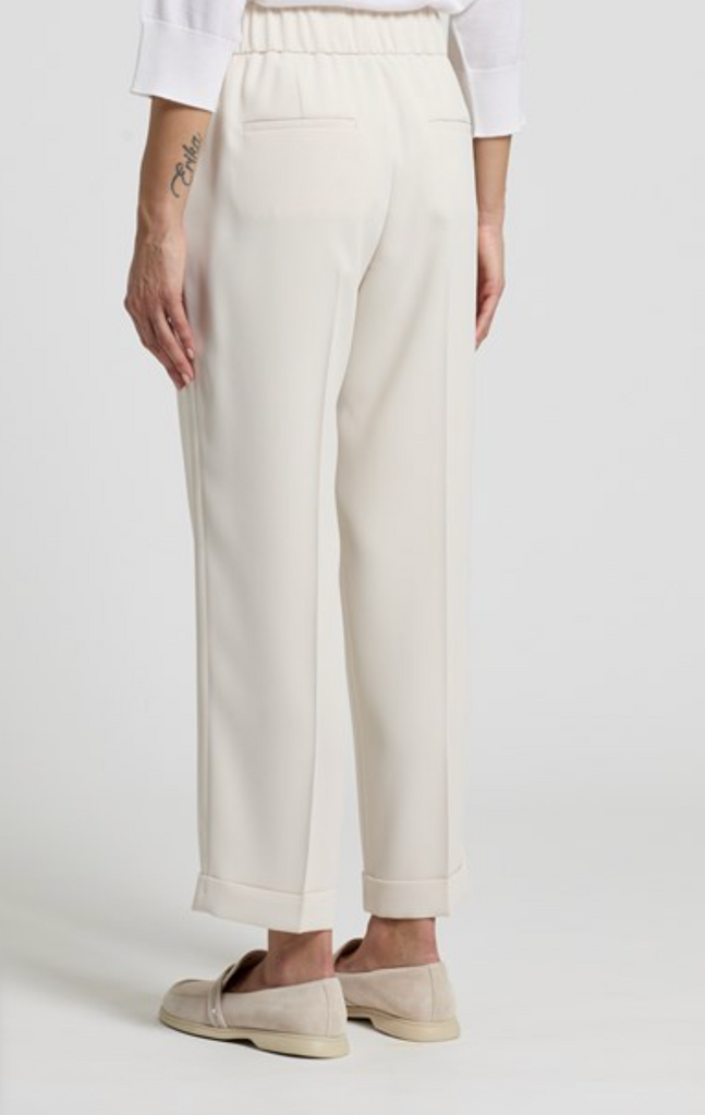 Pant with one dart and elastic back waist. Front side pocket, back welt pocket. Highlight details on front pocket. Turn-up hem