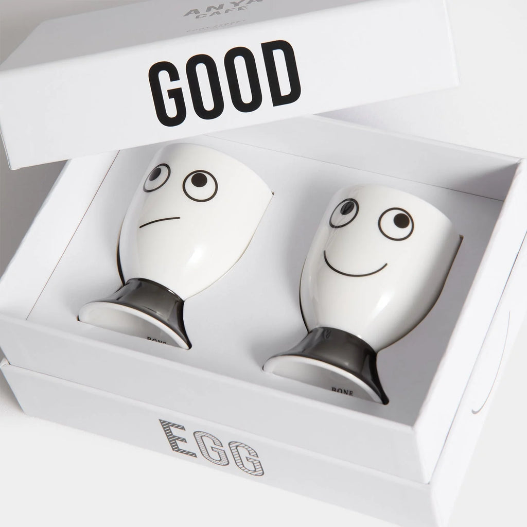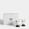 Introducing the ceramics collection, a line up of playful pieces to add character to your kitchen, to animate your shelves and provide great gifts. The fresh white designs are hand painted in Stoke-on-Trent, then carefully wrapped into our sleek made-to-keep boxes. Printed with the signature eyes, these egg cups are designed to bring joy to your breakfast table