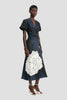 The house’s signature Eve Midi Dress is reconsidered with a refined print in Pale Rose. Crafted from Navy viscose twill and fully lined, it has short sleeves with a drape insert, pleats at the waist and shoulder and a longer-length hem at the back.