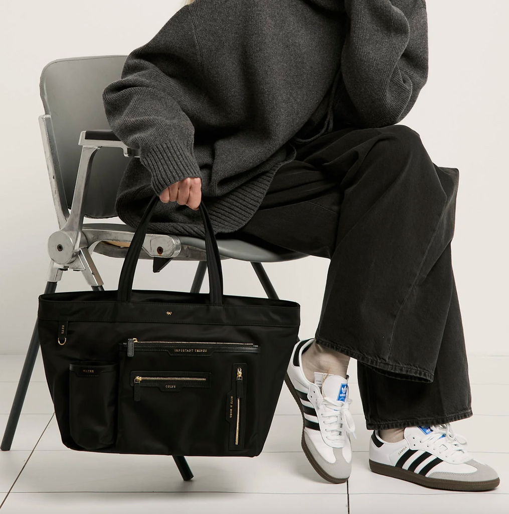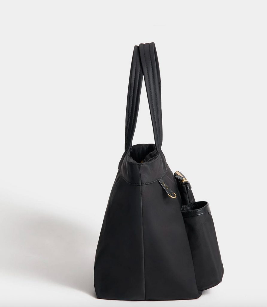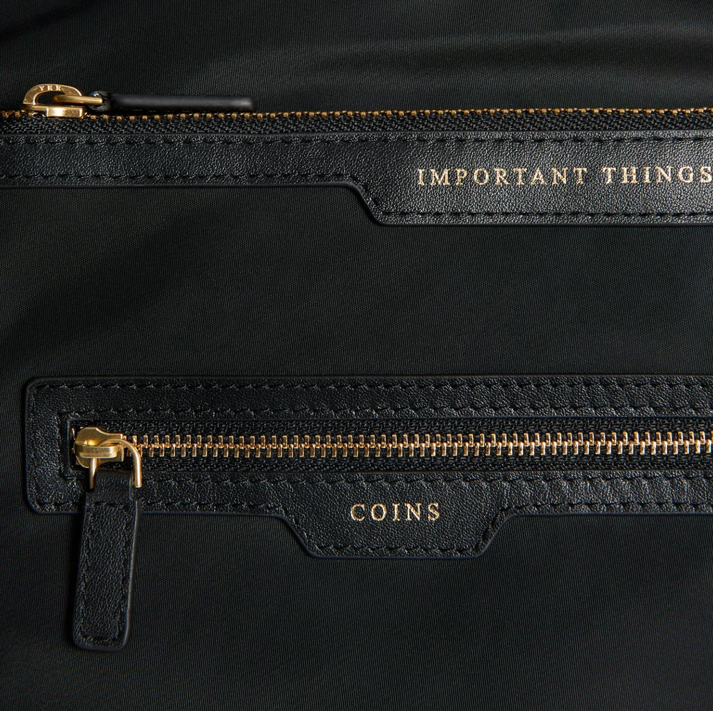 The E/W Multi-Pocket Tote has room for everything you need on a busy day commuting or travelling, with labels to keep everything organised. Made from ECONYL® regenerated nylon, it features a larger zippered section, roomy enough for a book, mini umbrella, wallet, and small cosmetics case – and equipped with pockets for your phone and pens – and a padded sleeve for your laptop. On the outside, pockets labelled ‘Important Things’, ‘Bits & Bobs’, ‘Water’, and ‘Coins’, plus a D-ring for keys ensure all of these items are within easy reach. Carry it by the top handles or wear it crossbody via the long, adjustable strap.