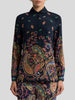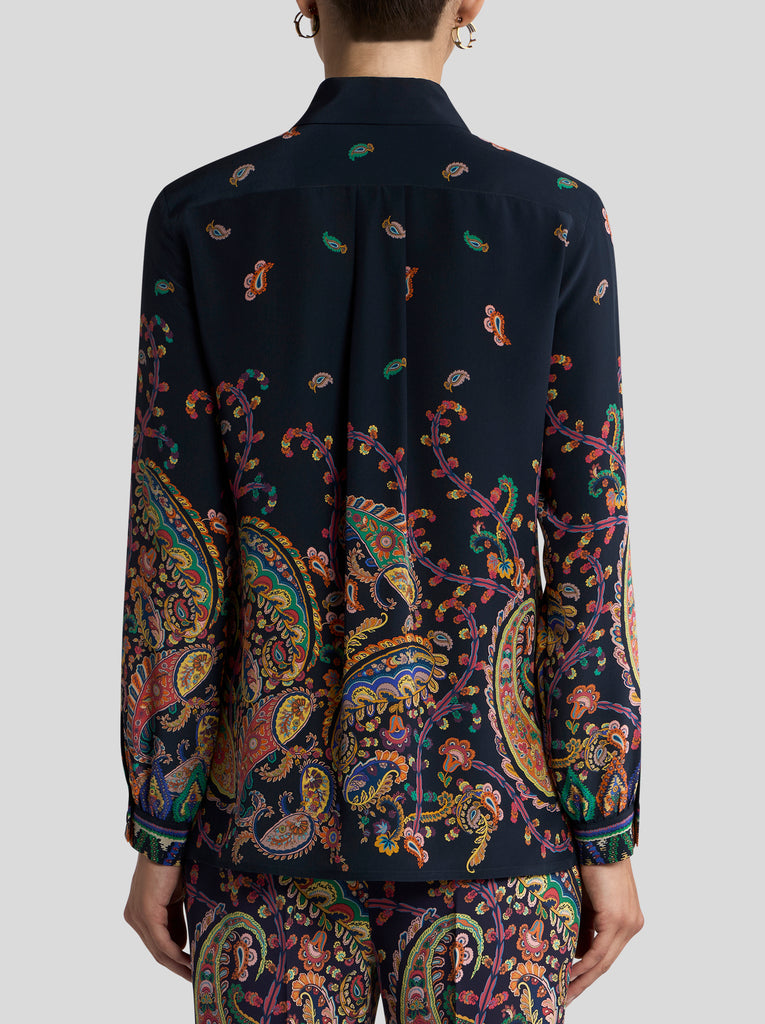Navy Silk Shirt with Paisley Placement Border