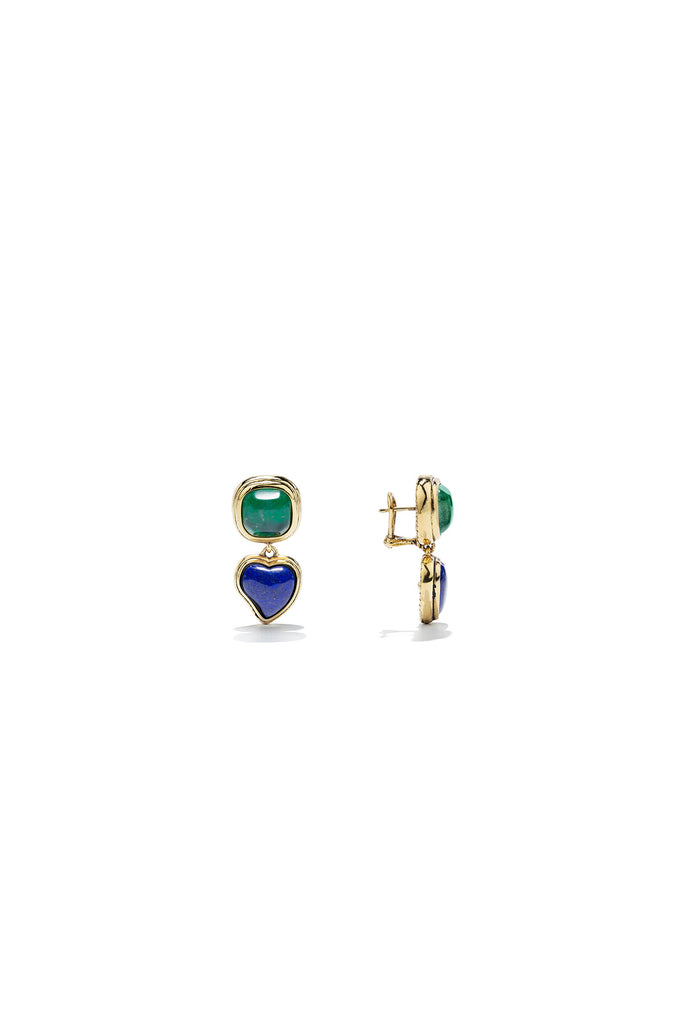 Renaissance Heart Earrings - Borieal Green and Lapus Lazuli