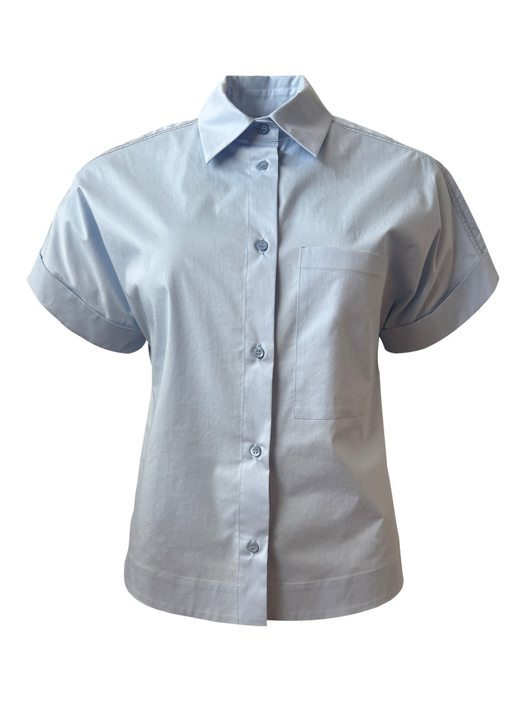Short Sleeve Cotton Sateen Shirt in Cornflower Blue